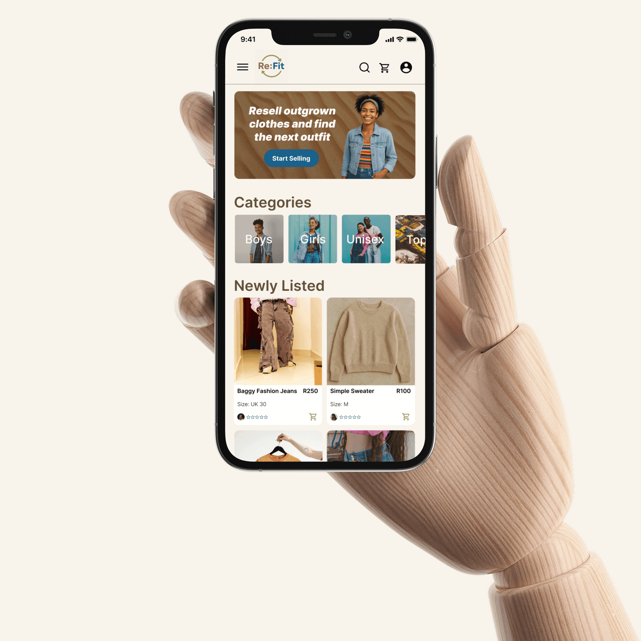 Teens outgrow clothes fast. Re:Fit lets parents and teens buy, sell, and share outgrown clothes, saving money and reducing waste.