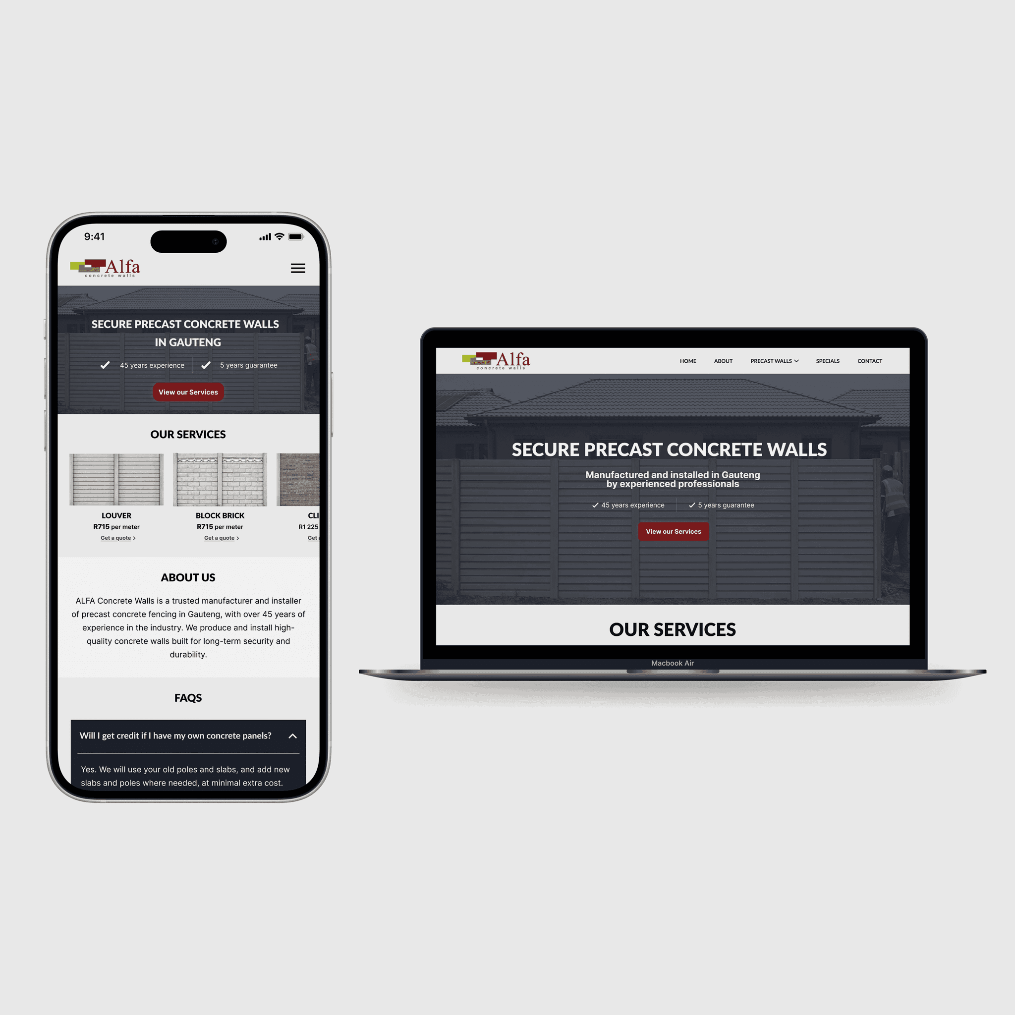 Alfa Concrete Walls' website was cluttered. I redesigned the homepage for clarity, product focus, and easier client navigation.