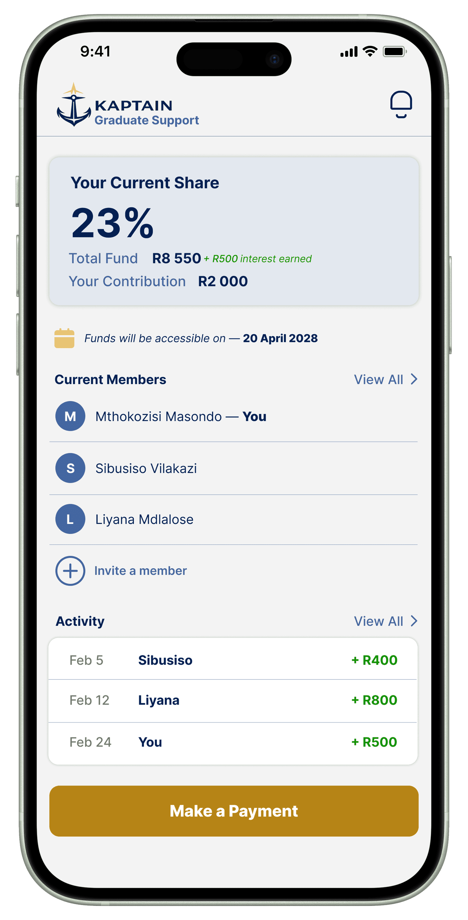 They don't want money to be the reason why they can't search for a job. Without any financial support to draw from, the costs of job searching become the difference between being an active job seeker and being forced to stop. Sihle needs a financial reserve that exists specifically for this need. They need to prepare for it while studying because that is when a student loan, a part-time job, or a bursary stipend still provides some form of income, however small. That window closes the moment they graduate. The goal is to use it before it does.