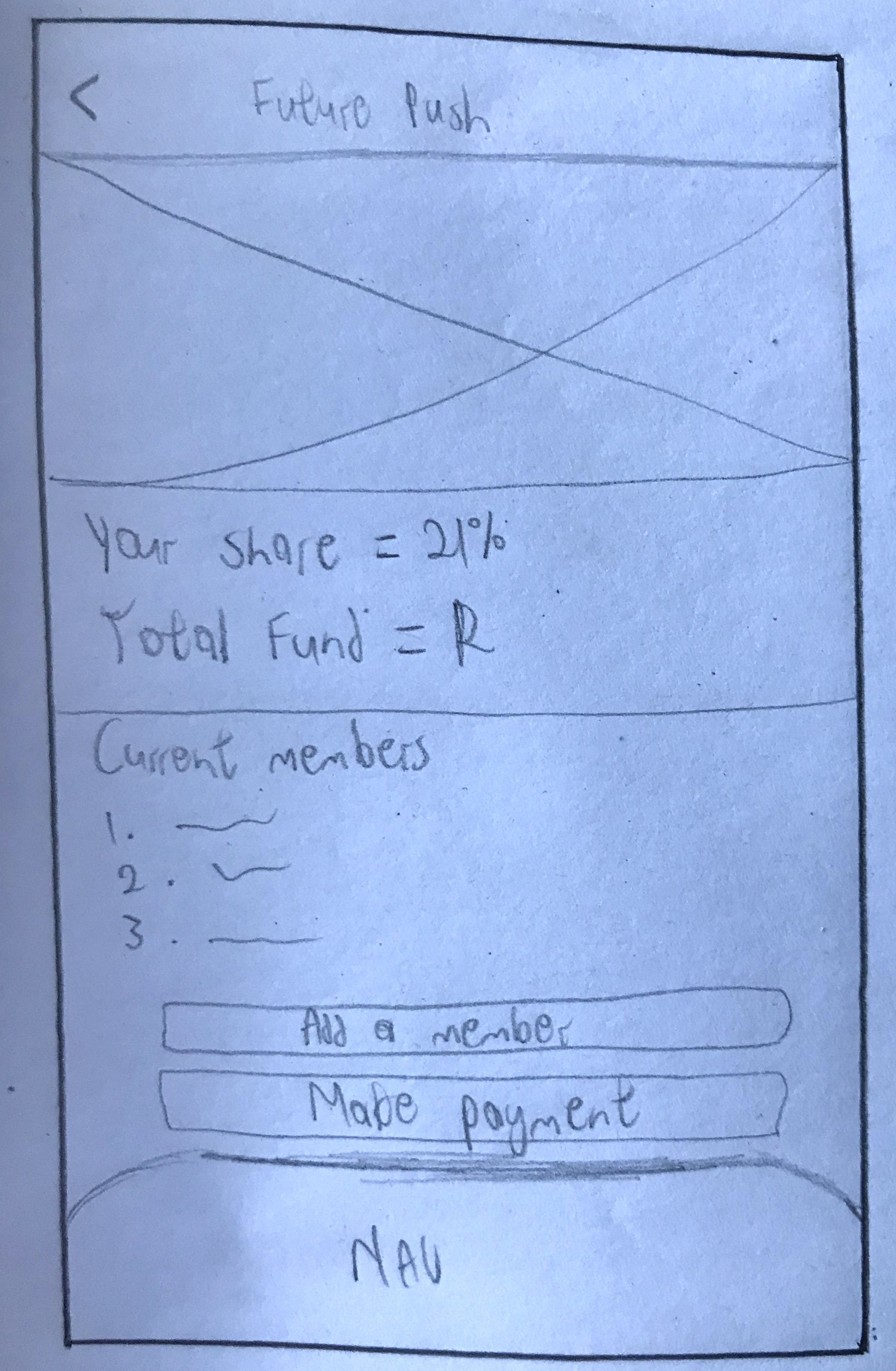I surfaced the user's share percentage and the total fund amount to keep users motivated, alongside current members and quick-access buttons for adding a member and making a payment.